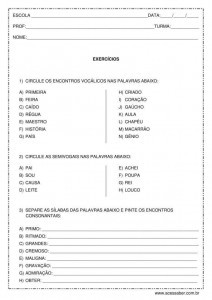 - PDF: Atividade de português: Encontros vocálicos e consonantais – 4º ou 5º – Pronto para imprimir