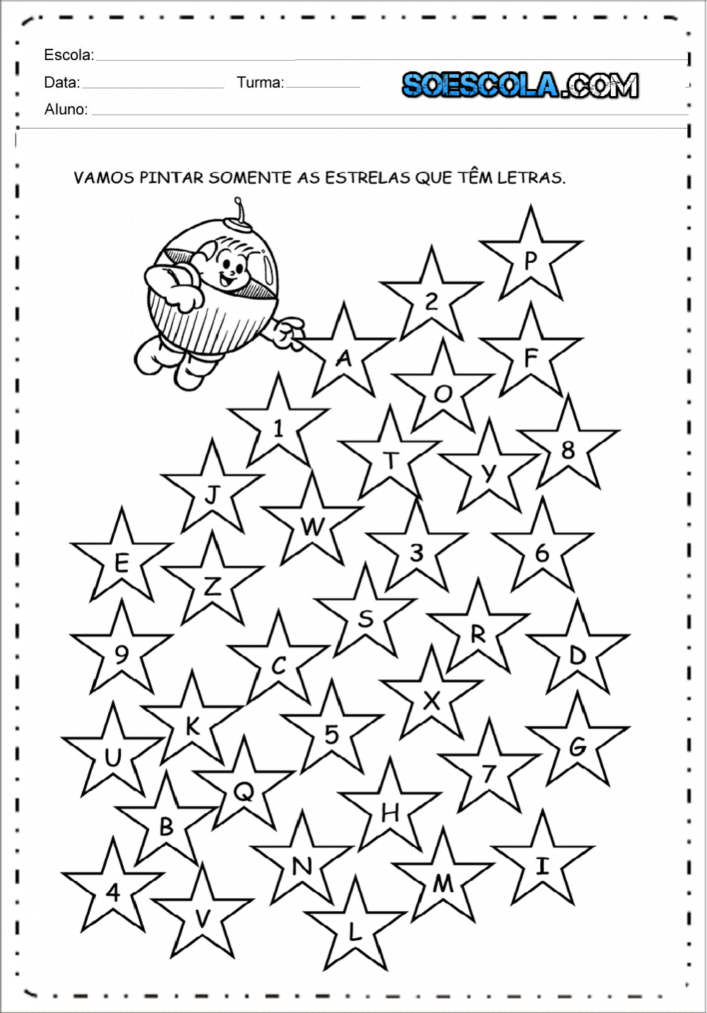 Pinte as estrelas com letras do alfabeto – Atividade para imprimir